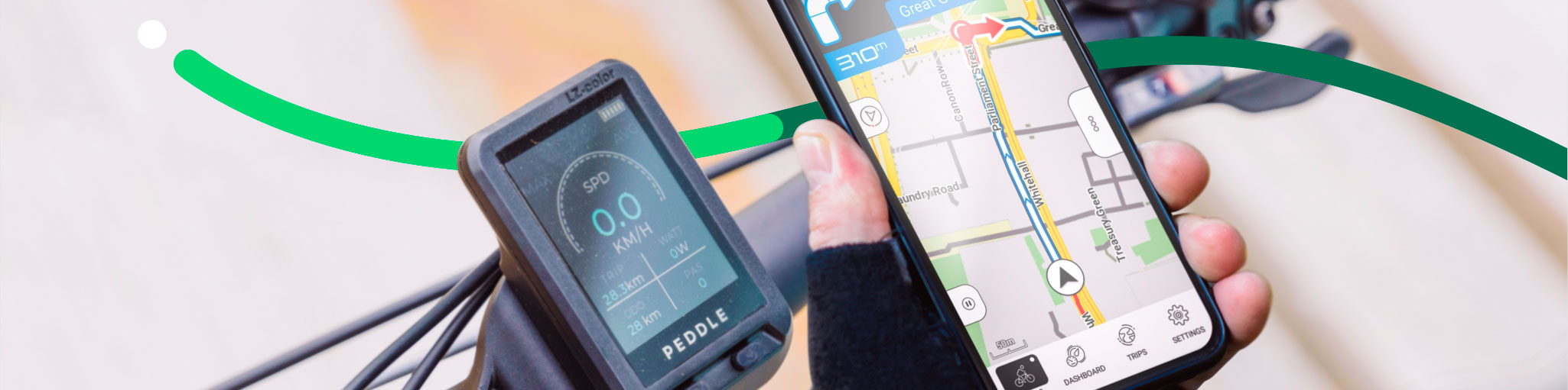 Stay on the right track during your Peddle adventure. Compatible with all Peddle electric bike models, the NAVIE app gives you important information about your current and past journeys. That includes a speedometer and turn-by-turn navigation that makes wrong turns a thing of the past.